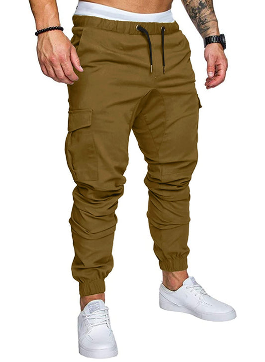 JMIERR Mens Fashion Cargo Pants - Casual Cotton Tapered Stretch Twill Drawstring Athletic Joggers Sweatpants with 6 Pockets